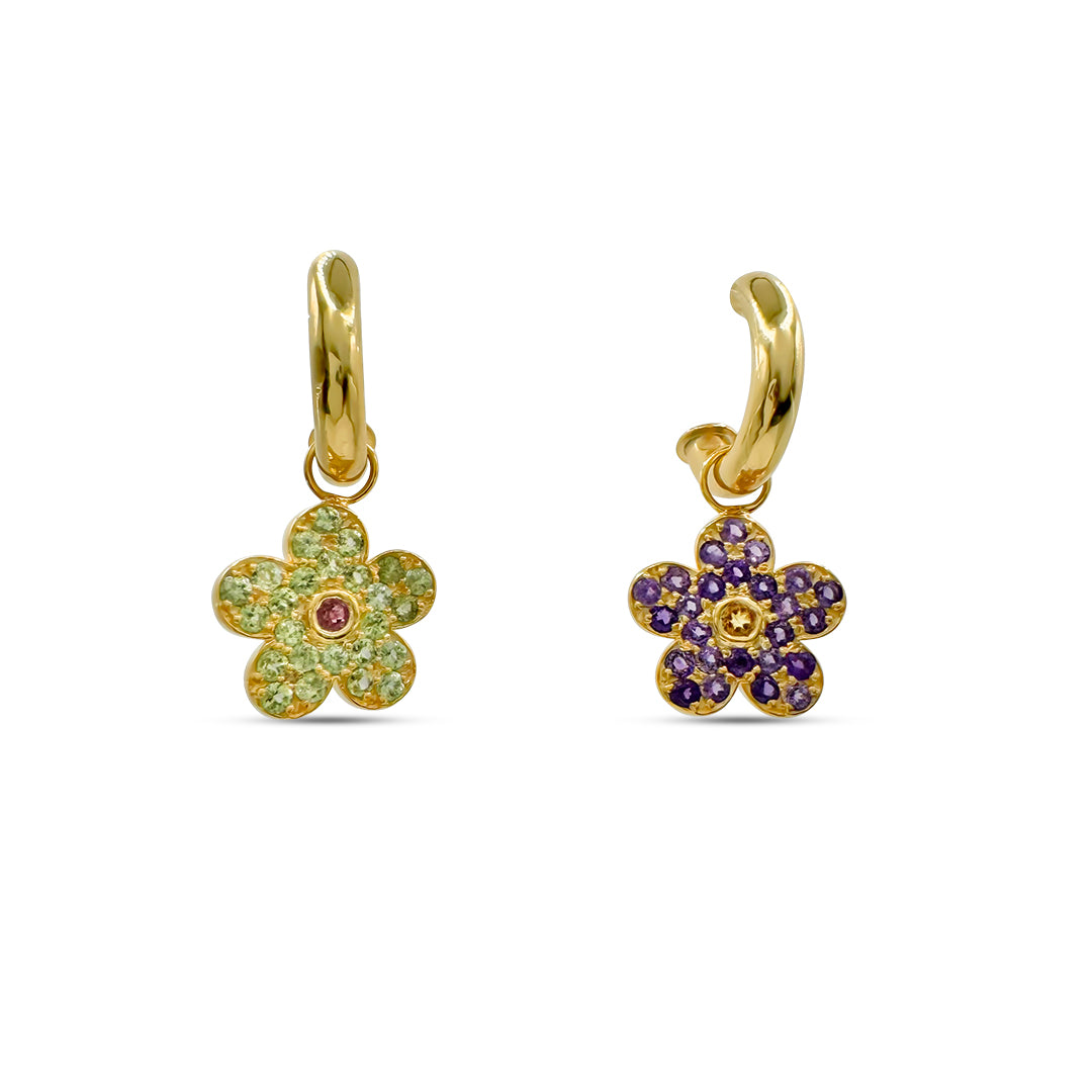 These Petal Cuff earrings epitomize the charm and simplicity of Love Dria's Charming Gems collection. Crafted from gleaming combination of amethyst with citrine and peridot and pink tourmaline, each of these charm earrings showcases a small stamping on a high-polished finish cuff earring and a classic post. Designed to slot seamlessly into your existing jewelry line-up, try teaming them with the Petal pendant for an effortlessly finish.