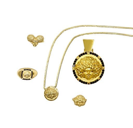 As a symbol of self love this beautiful Afro motif in 14k yellow gold held by delicate curb chain will always lift your spirits and remind you of your potential greatness.