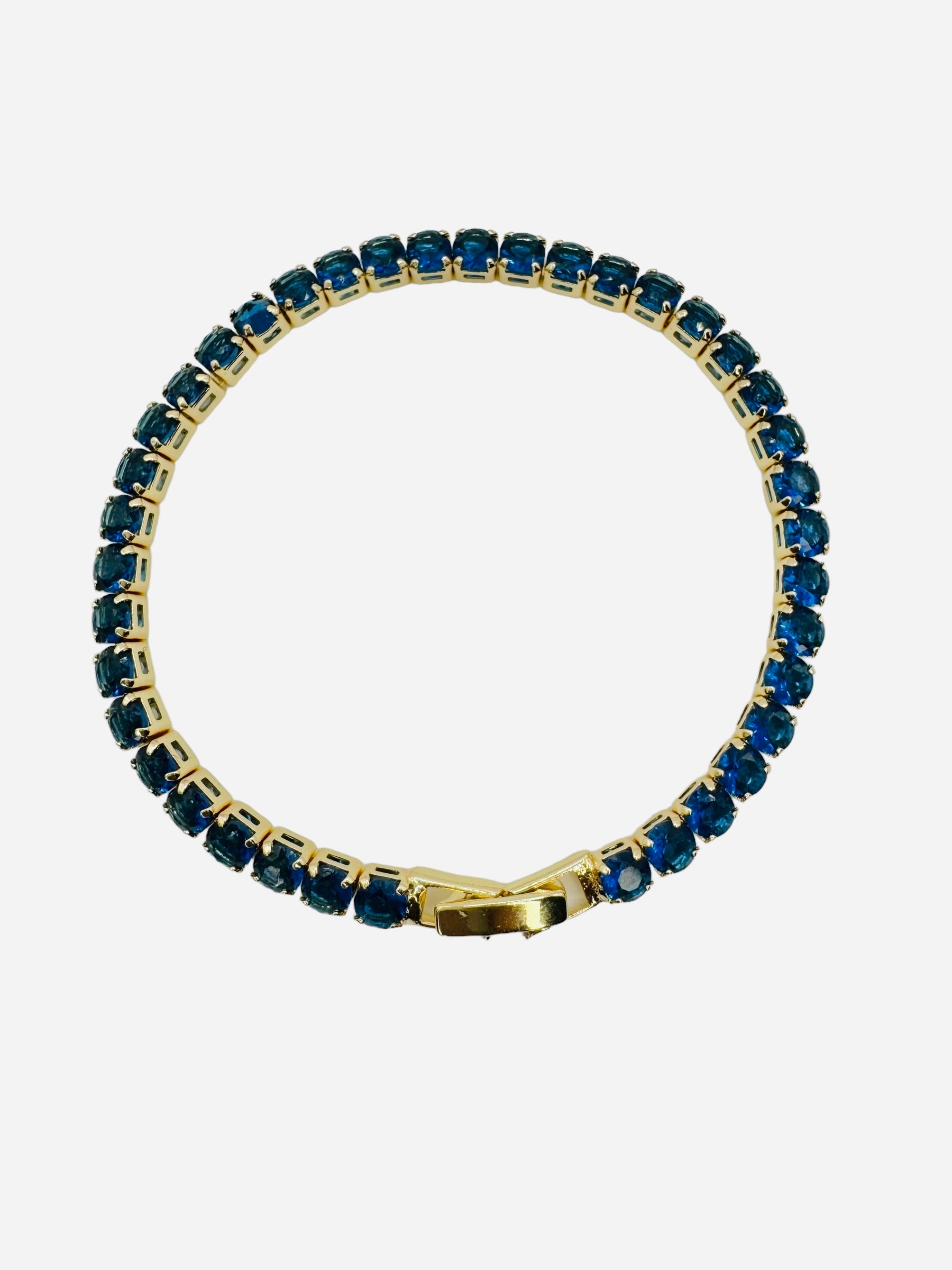 The electric blue tones makes this bracelet a perfect accessory for both everyday wear and special occasions. Whether you're looking to add a pop of color to your jewelry collection or searching for the perfect gift, this tennis bracelet offers a blend of classic charm and contemporary style. Finished with a secure clasp, it guarantees a comfortable and worry-free wear.