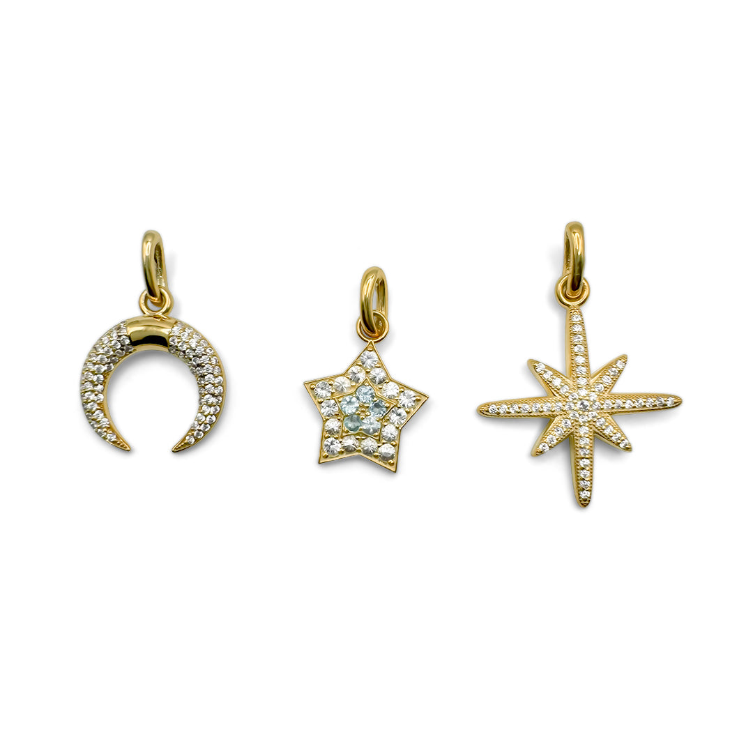 Exemplifying designer's passion for precious stones, the Blaze Pendant features prong-set diamonds and aquamarines which illuminate the star shaped charm crafted from 14k yellow gold. Complete the look with the Blaze studs from the Charming Gems collection for a unique and exciting look.