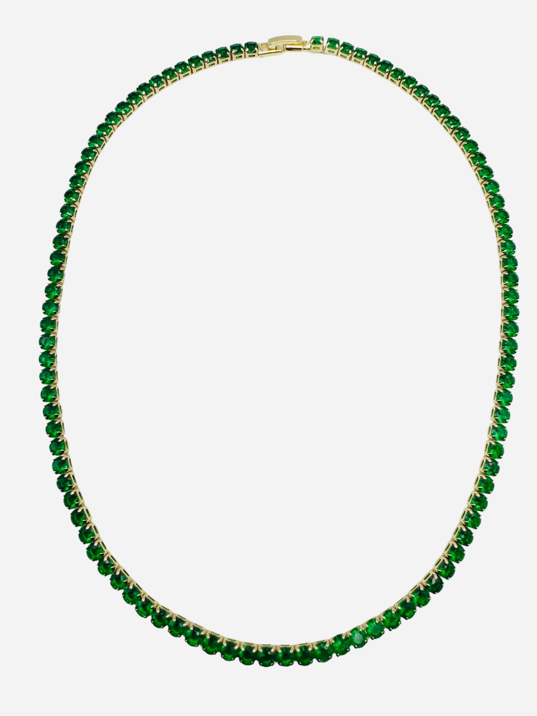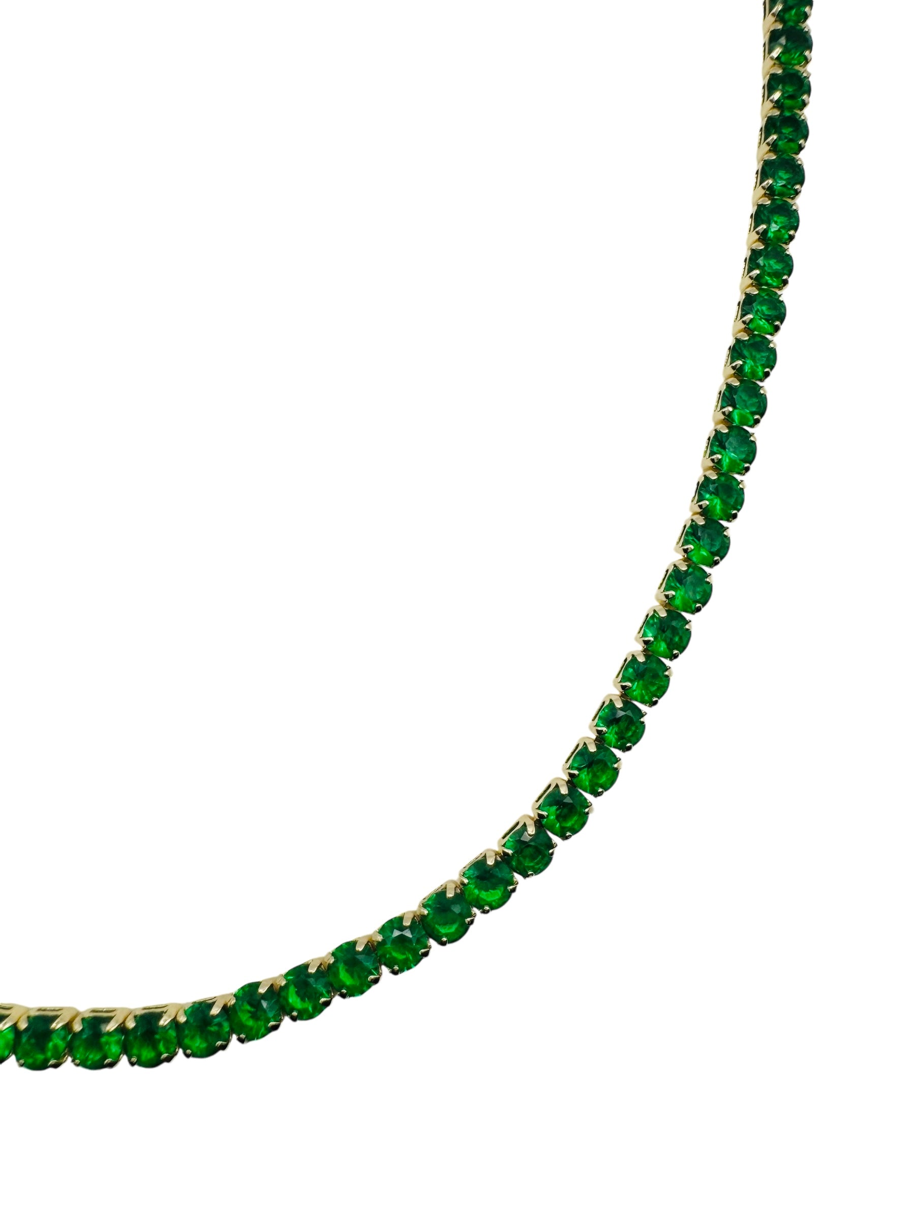 Meticulously crafted to capture both timeless beauty and modern sophistication our Clover tennis necklace features vibrant green cubic zirconia, set in a luxurious gold-filled setting that ensures lasting shine and durability.