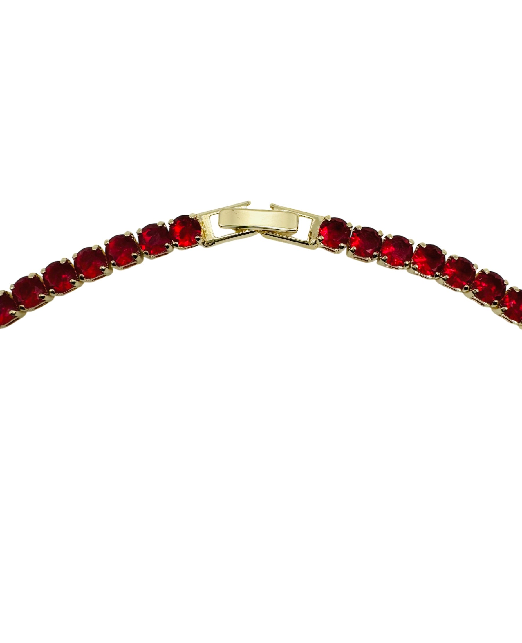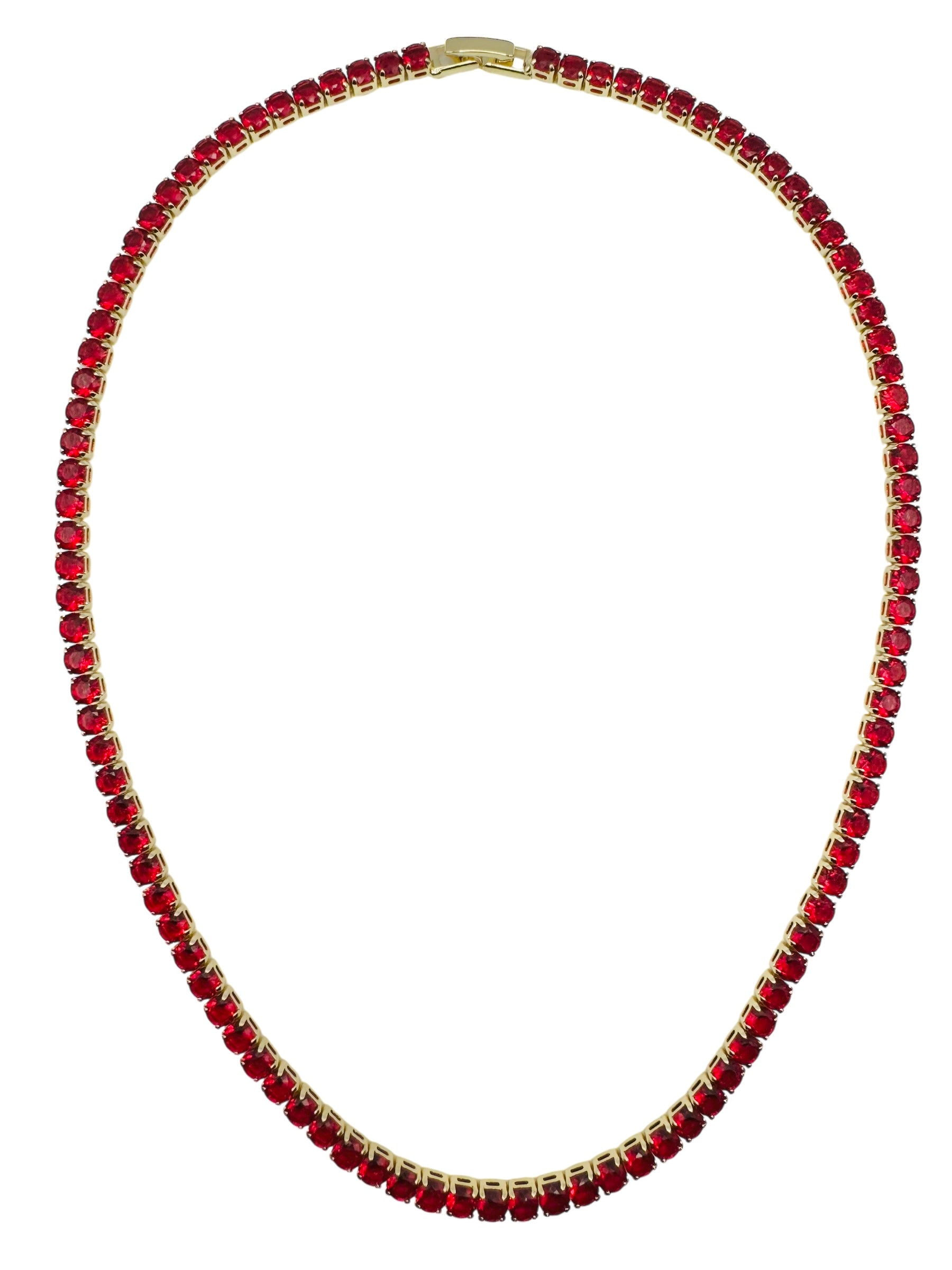 Meticulously crafted to capture both timeless beauty and modern sophistication our Ferrari Red Tennis Necklace features a striking combination of vibrant red and pristine white cubic zirconia, set in a luxurious gold-filled setting that ensures lasting shine and durability.