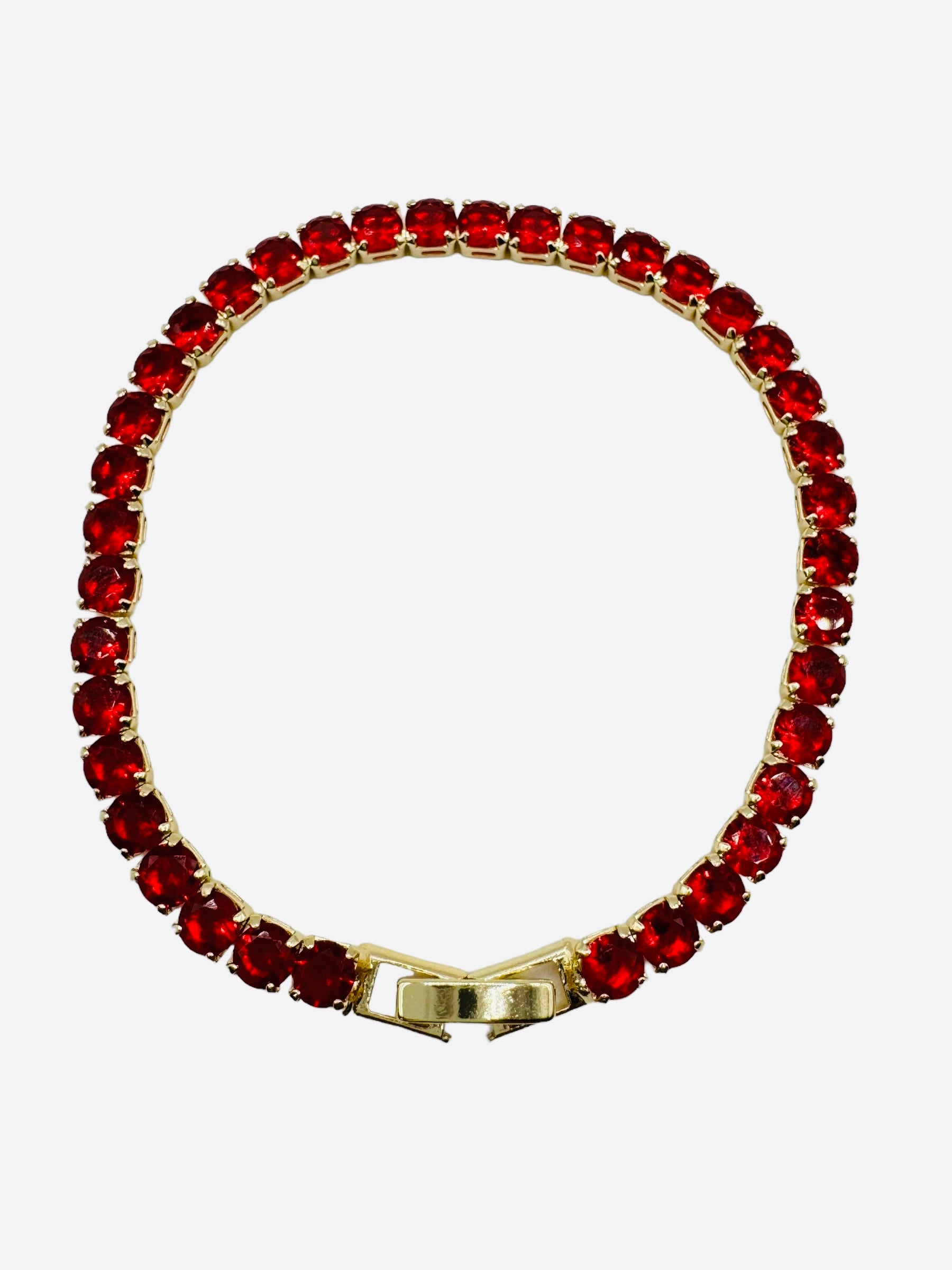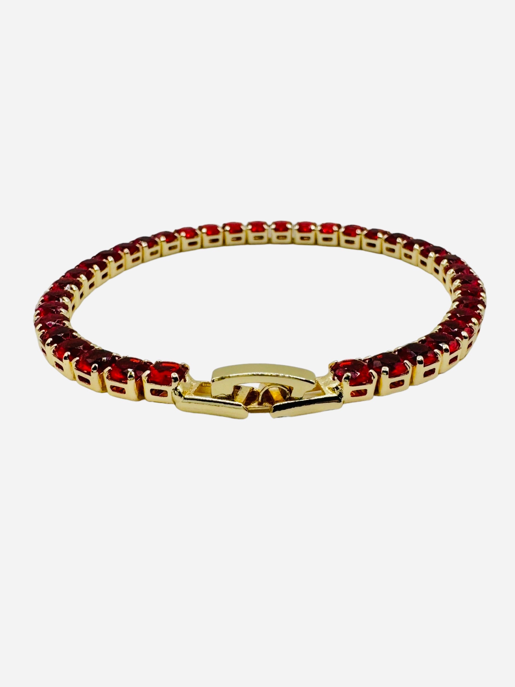 The fiery red tone makes this bracelet a perfect accessory for both everyday wear and special occasions. Whether you're looking to add a pop of color to your jewelry collection or searching for the perfect gift, this tennis bracelet offers a blend of classic charm and contemporary style.