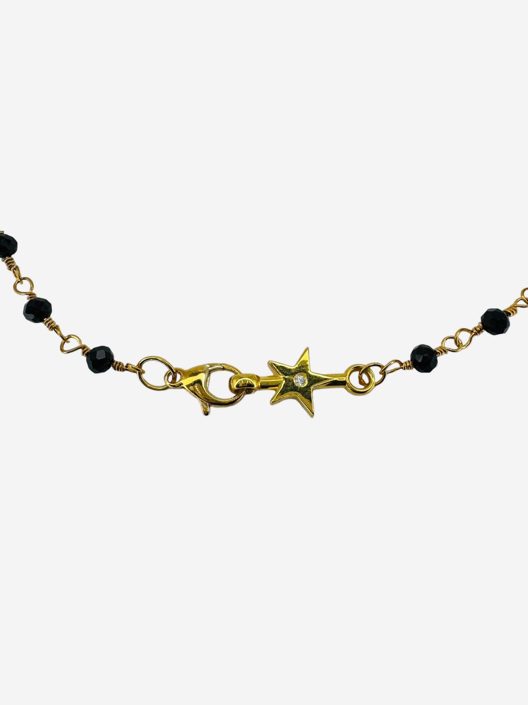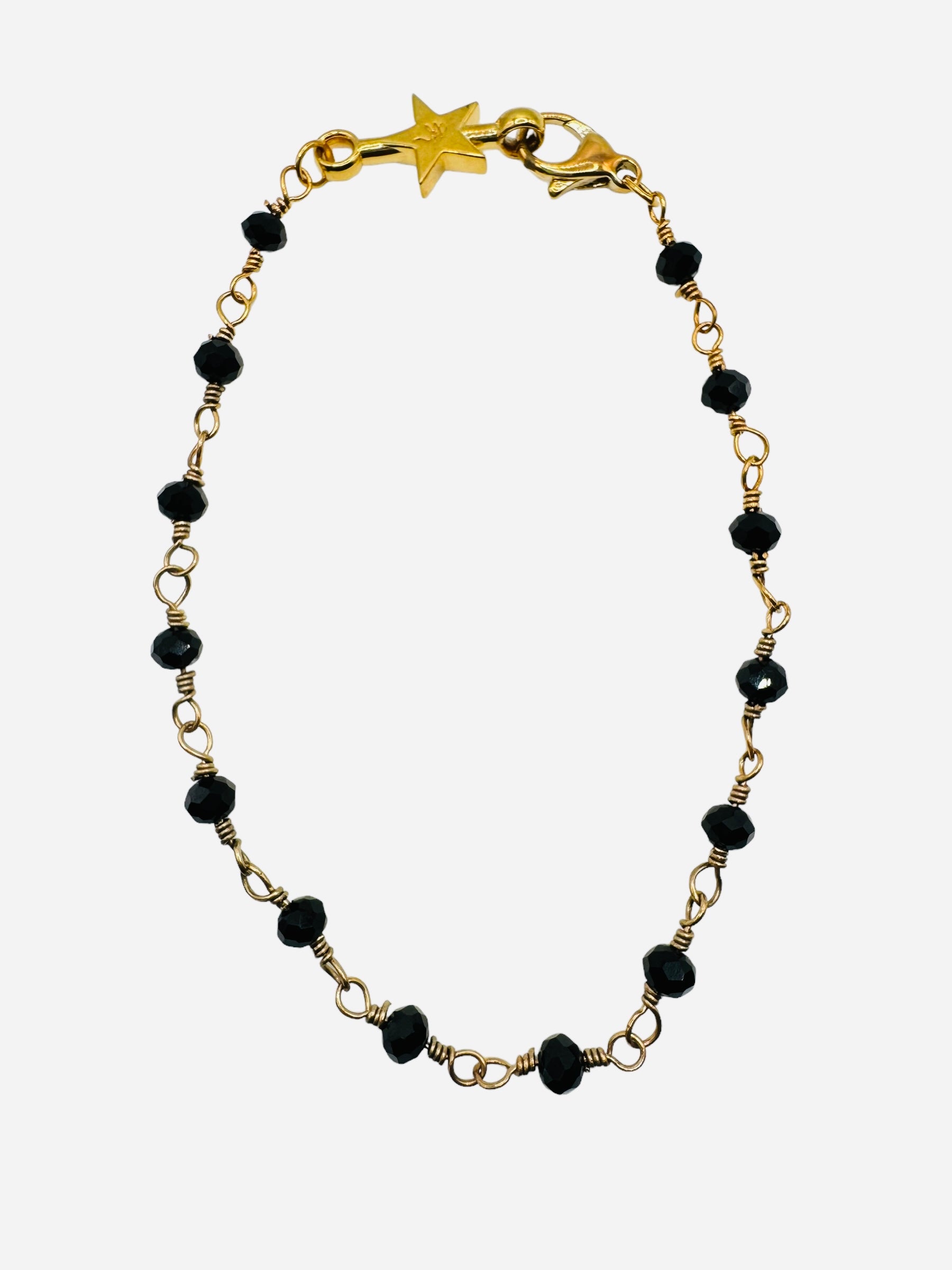 Discover the perfect blend of elegance and artistry with this exquisite golden wire-wrapped Black Spinel beaded chain bracelet. This stunning piece features delicate facets Black Spinel beads wrapped in fine gold-plated wire, creating a unique and textured design that stands out with every wear. The rich, warm tones of the 24k gold plating offer a luxurious finish that elevates any ensemble, making it a must-have addition to your jewelry collection.