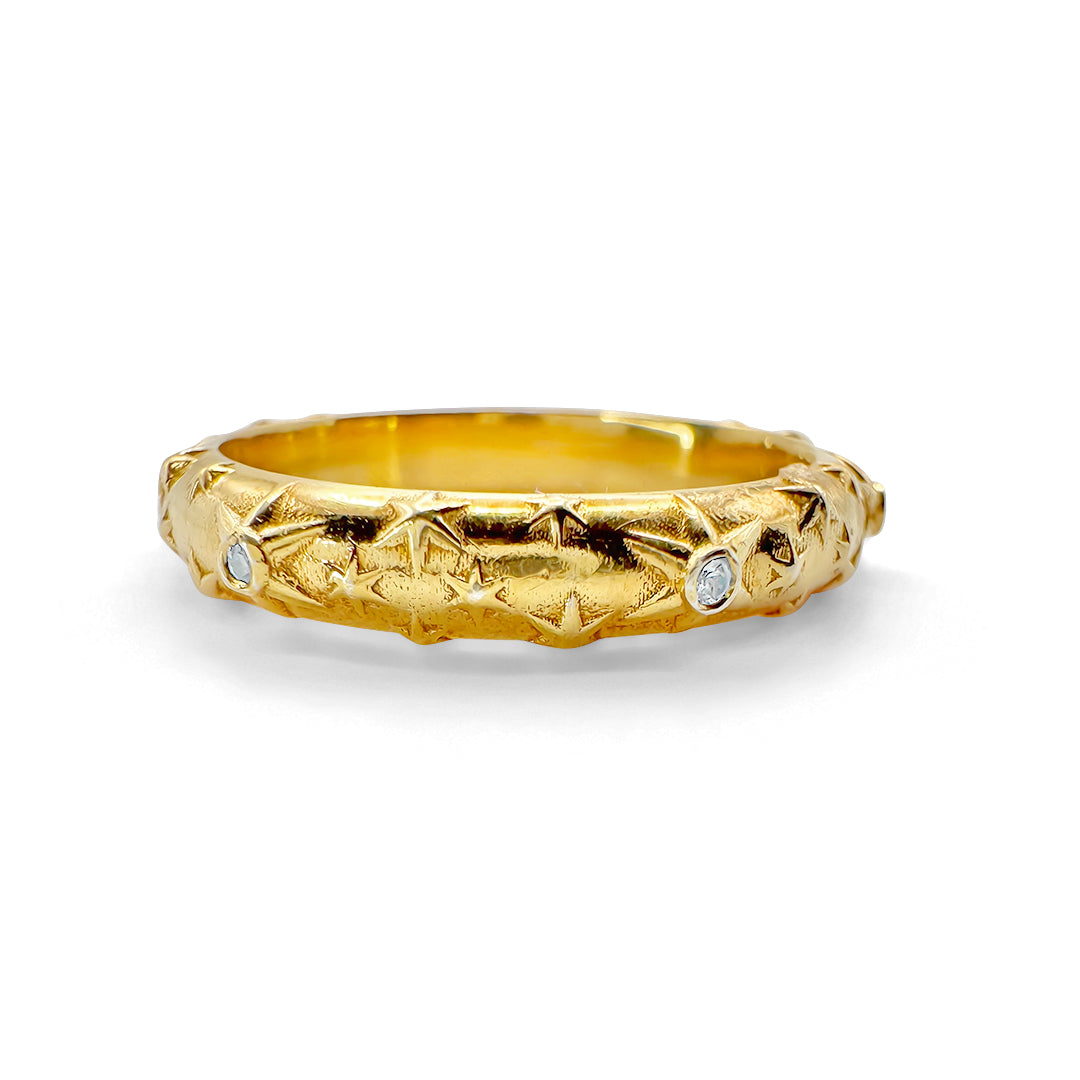 Embossed with our Signature Star motif and gypsy set diamonds our Twilight band will be a beautiful sparkling addition to your ring collection. Add our Astros Ring to your cart now to create the perfect ring stacking duo!