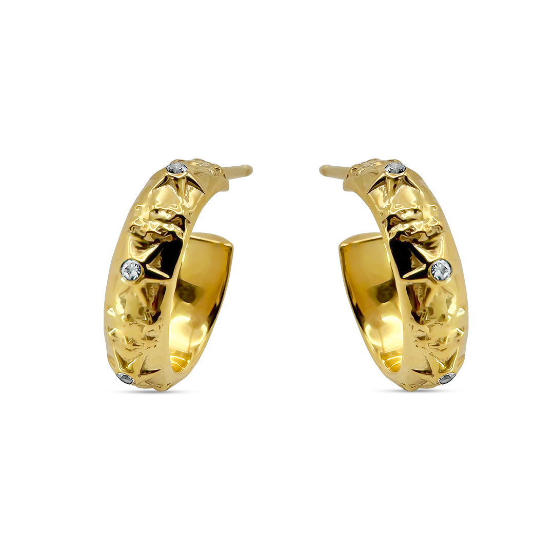 Embossed with our Signature Star motif and gypsy set diamonds our Twilight Huggies will be a beautiful sparkling addition to your earring collection.